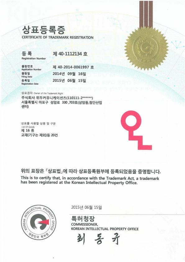 [Korea/Trademark] OLL 16 Class 페이지 정보 작성자 WeDu 댓글 0건 조회 6,409회 작성일 19-06-04 10:46 본문 2015-06-15 Trademark 40-1112134 16 Class List Previous[Korea/Trademark] OLL 09 Class 19.06.04 Next[Korea/Trademark] OLL 41 Class 19.06.04