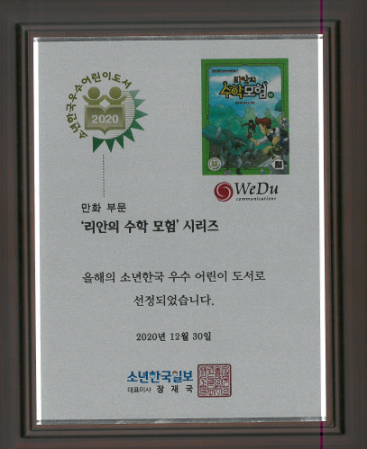 2020 소년한국 우수 어린이 도서 선정 페이지 정보 작성자 WeDu 댓글 0건 조회 10,031회 작성일 21-12-31 13:00 본문 2020-12-30 '리안의 수학 모험' 시리즈 우수 어린이 도서 선정 소년한국일보 대표이사 List Previous2021 4IR AWARDS 대상 21.12.31 Next2020 기술혁신 우수기업 21.12.31