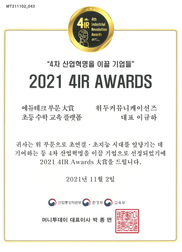 2021 4IR AWARDS 대상 페이지 정보 작성자 WeDu 댓글 0건 조회 11,147회 작성일 21-12-31 13:01 본문 2021-11-02 2021 4IR AWARDS 대상 머니투데이 List Previous2021 소년한국 우수 어린이 도서 22.01.06 Next2020 소년한국 우수 어린이 도서 선정 21.12.31